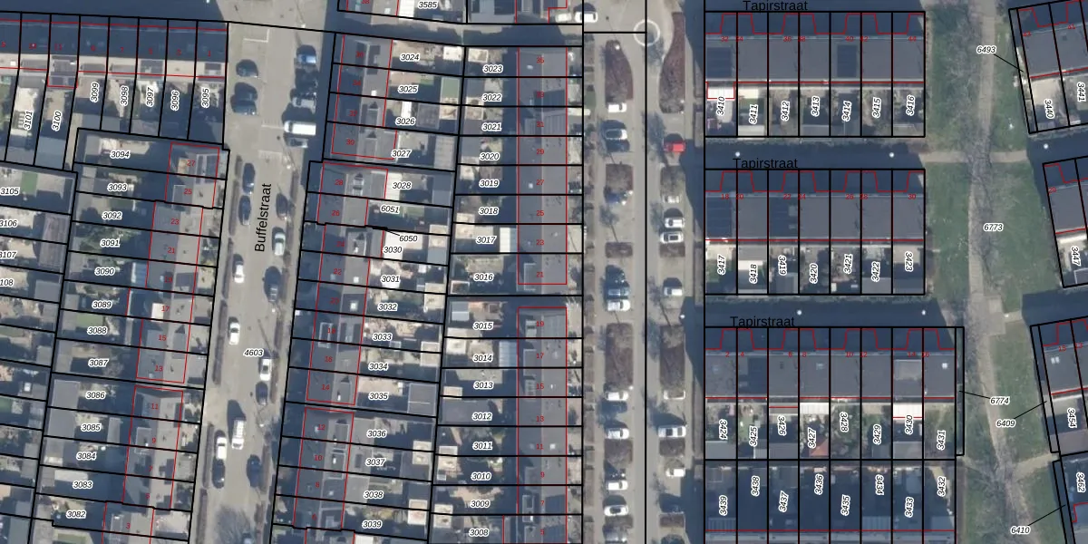 Gebruik de zoekbalk of klik op een perceel voor informatie over de adressen binnen dit perceel.