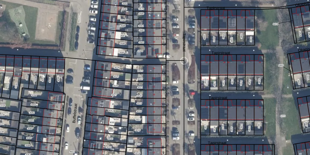 Het perceel waarop Tapirstraat 33 staat heeft een oppervlakte van 119 m². Dit is een middelgroot perceel. De perceeloppervlakte wordt geregistreerd door het Kadaster. Gedetailleerde informatie over de maten van dit perceel kunt u vinden in het rapport Kadastrale kaart met maatvoering van Tapirstraat 33.
