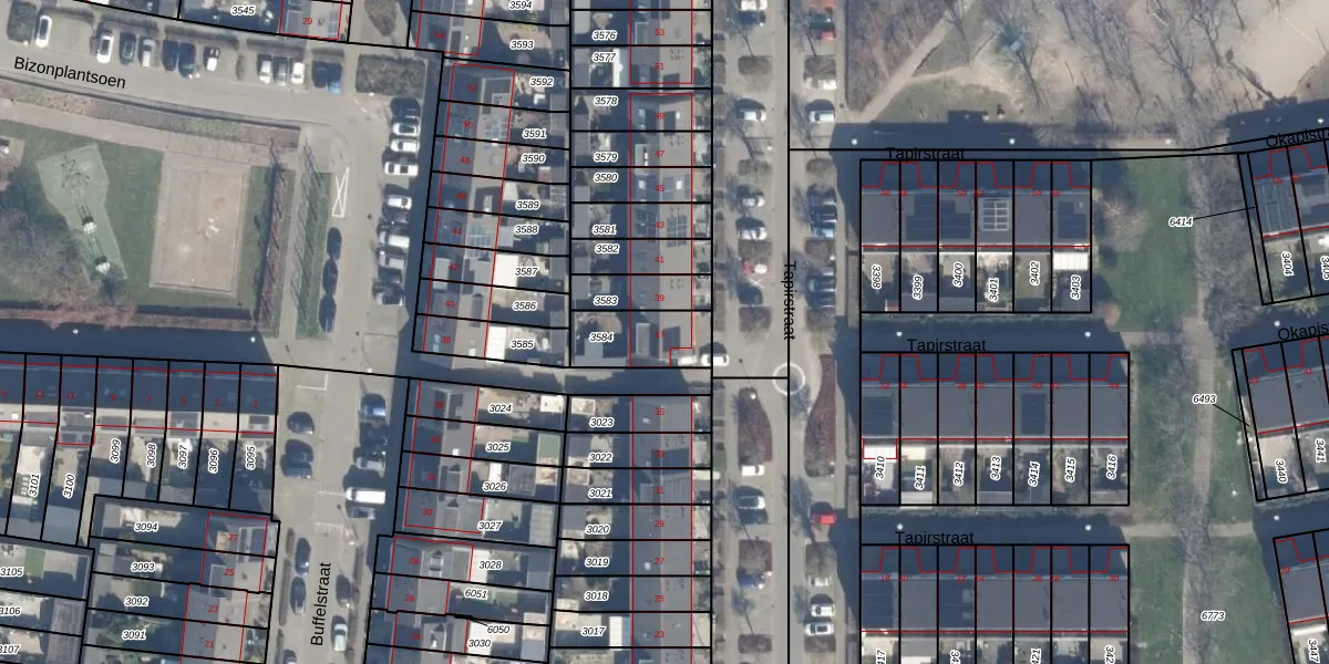 Het perceel waarop Tapirstraat 37 staat heeft een oppervlakte van 184 m². Dit is een middelgroot perceel. De perceeloppervlakte wordt geregistreerd door het Kadaster. Gedetailleerde informatie over de maten van dit perceel kunt u vinden in het rapport Kadastrale kaart met maatvoering van Tapirstraat 37.