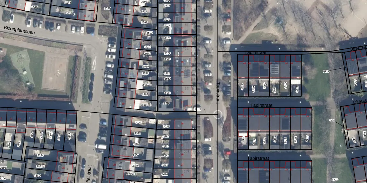 Het perceel waarop Tapirstraat 39 staat heeft een oppervlakte van 115 m². Dit is een middelgroot perceel. De perceeloppervlakte wordt geregistreerd door het Kadaster. Gedetailleerde informatie over de maten van dit perceel kunt u vinden in het rapport Kadastrale kaart met maatvoering van Tapirstraat 39.