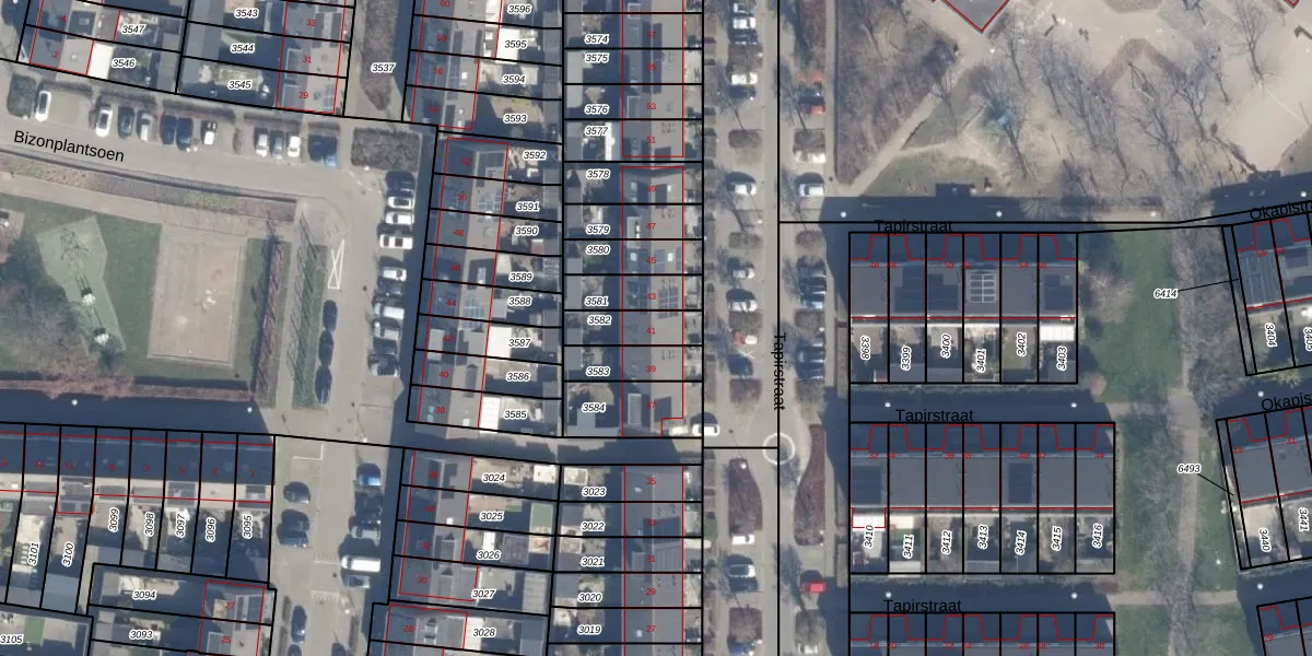 Tapirstraat 41 is gelegen op kadastraal perceel AMR04N3582. Deze kadastrale aanduiding is uniek en wordt gebruikt door het Kadaster om eigendomsrechten en andere zakelijke rechten vast te leggen. Het perceel maakt onderdeel uit van de kadastrale gemeente Almere.