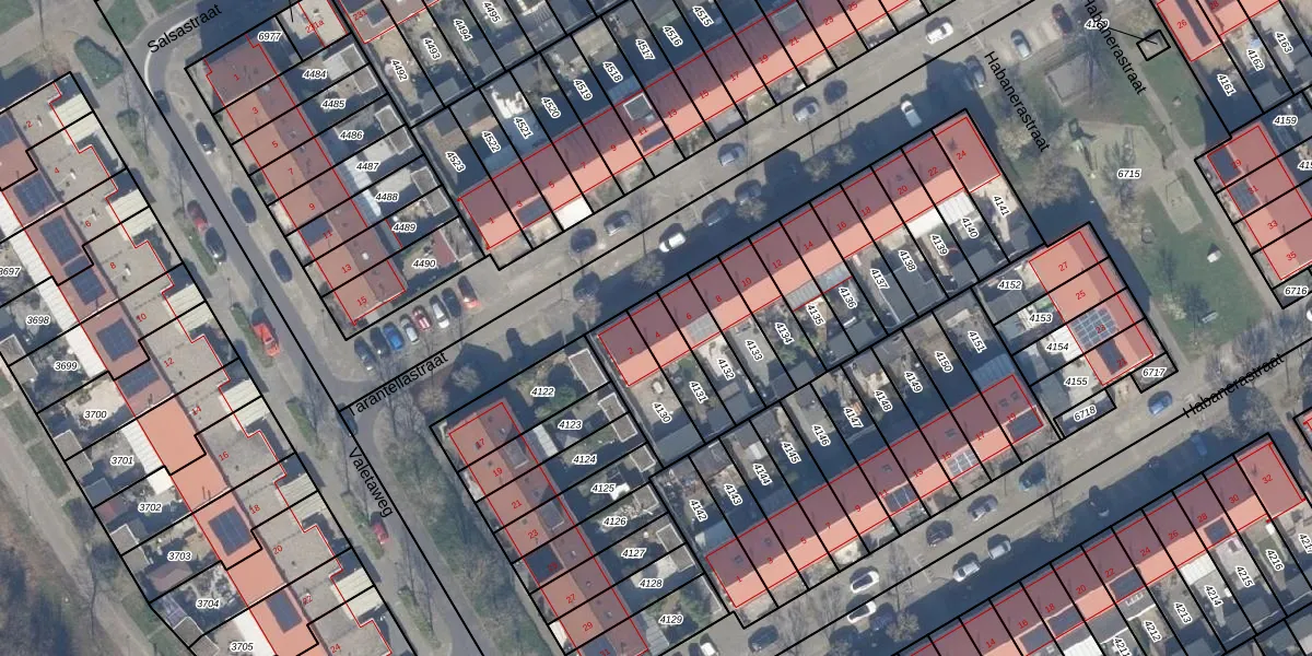 Het perceel waarop Tarantellastraat 4 staat heeft een oppervlakte van 128 m². Dit is een middelgroot perceel. De perceeloppervlakte wordt geregistreerd door het Kadaster. Gedetailleerde informatie over de maten van dit perceel kunt u vinden in het rapport Kadastrale kaart met maatvoering van Tarantellastraat 4.