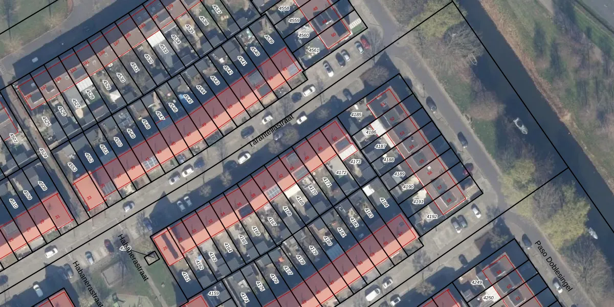 Tarantellastraat 46 is gelegen op kadastraal perceel AMR04U4171. Deze kadastrale aanduiding is uniek en wordt gebruikt door het Kadaster om eigendomsrechten en andere zakelijke rechten vast te leggen. Het perceel maakt onderdeel uit van de kadastrale gemeente Almere.