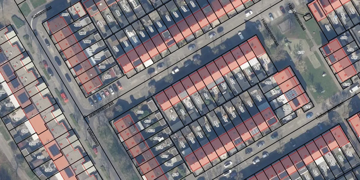 Het perceel waarop Tarantellastraat 6 staat heeft een oppervlakte van 128 m². Dit is een middelgroot perceel. De perceeloppervlakte wordt geregistreerd door het Kadaster. Gedetailleerde informatie over de maten van dit perceel kunt u vinden in het rapport Kadastrale kaart met maatvoering van Tarantellastraat 6.