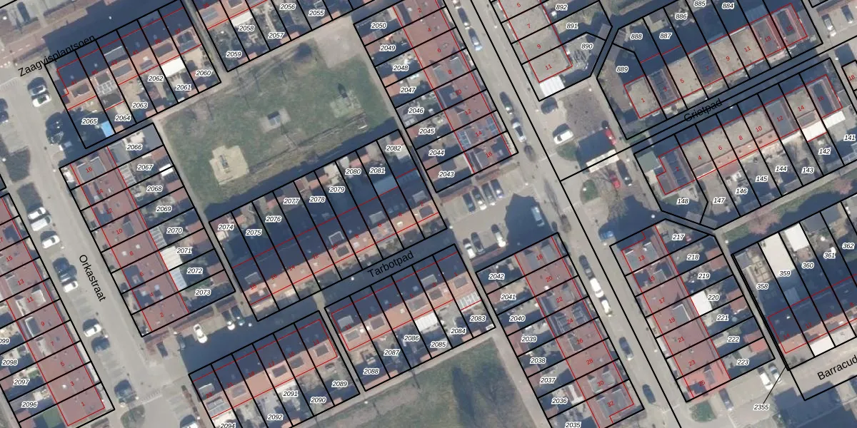 Gebruik de zoekbalk of klik op een perceel voor informatie over de adressen binnen dit perceel.