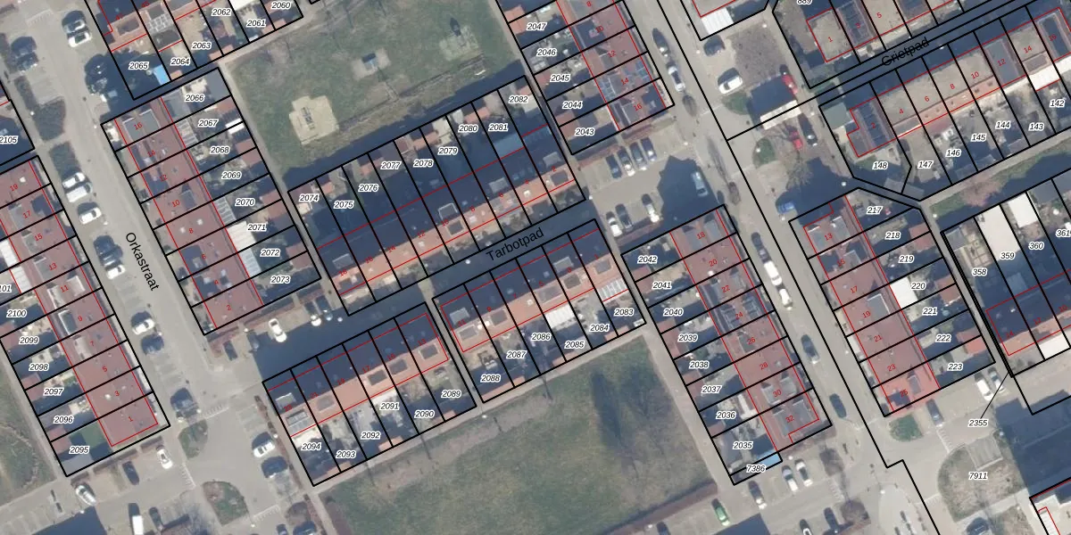 Gebruik de zoekbalk of klik op een perceel voor informatie over de adressen binnen dit perceel.