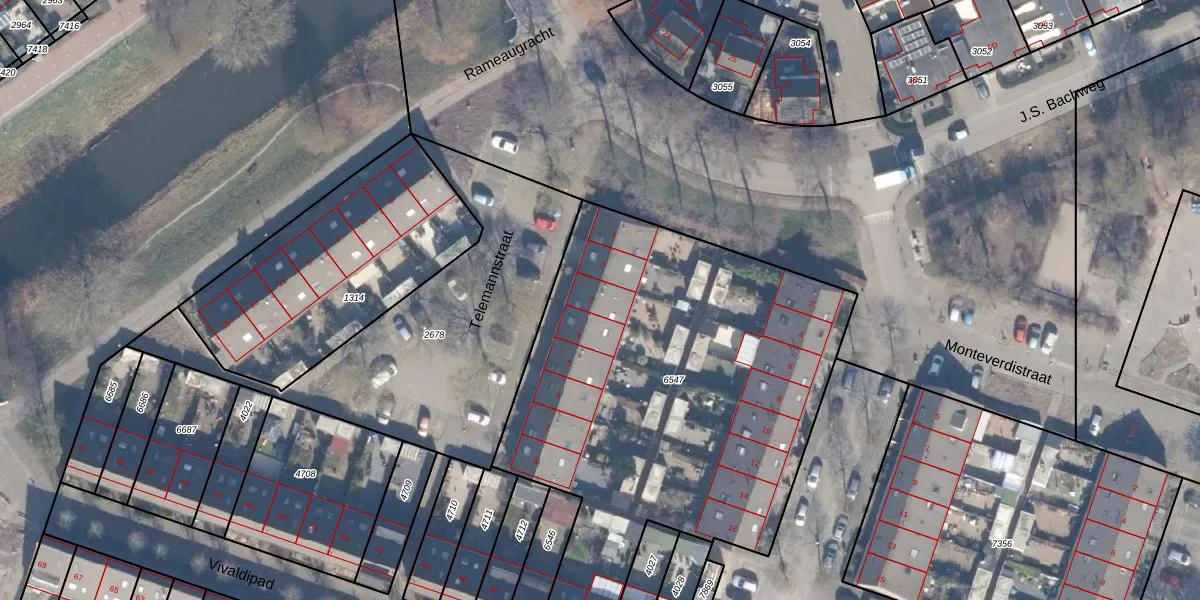 Het perceel waarop Telemannstraat 3 staat heeft een oppervlakte van 2562 m². Dit is een zeer groot perceel. De perceeloppervlakte wordt geregistreerd door het Kadaster. Gedetailleerde informatie over de maten van dit perceel kunt u vinden in het rapport Kadastrale kaart met maatvoering van Telemannstraat 3.