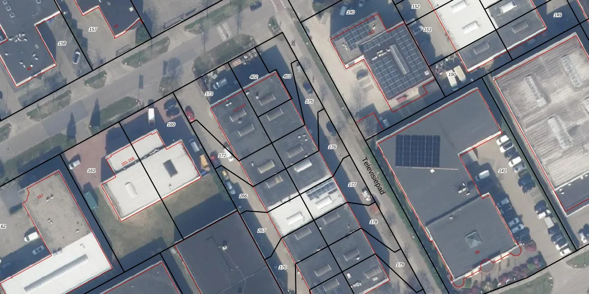 Televisieweg 121 is gelegen op kadastraal perceel AMR04S175. Deze kadastrale aanduiding is uniek en wordt gebruikt door het Kadaster om eigendomsrechten en andere zakelijke rechten vast te leggen. Het perceel maakt onderdeel uit van de kadastrale gemeente Almere.