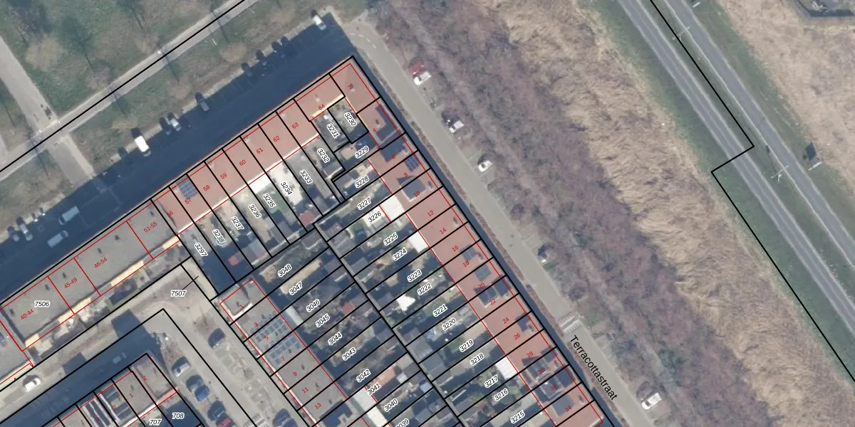 Terracottastraat 12 is gelegen op kadastraal perceel AMR04B3225. Deze kadastrale aanduiding is uniek en wordt gebruikt door het Kadaster om eigendomsrechten en andere zakelijke rechten vast te leggen. Het perceel maakt onderdeel uit van de kadastrale gemeente Almere.