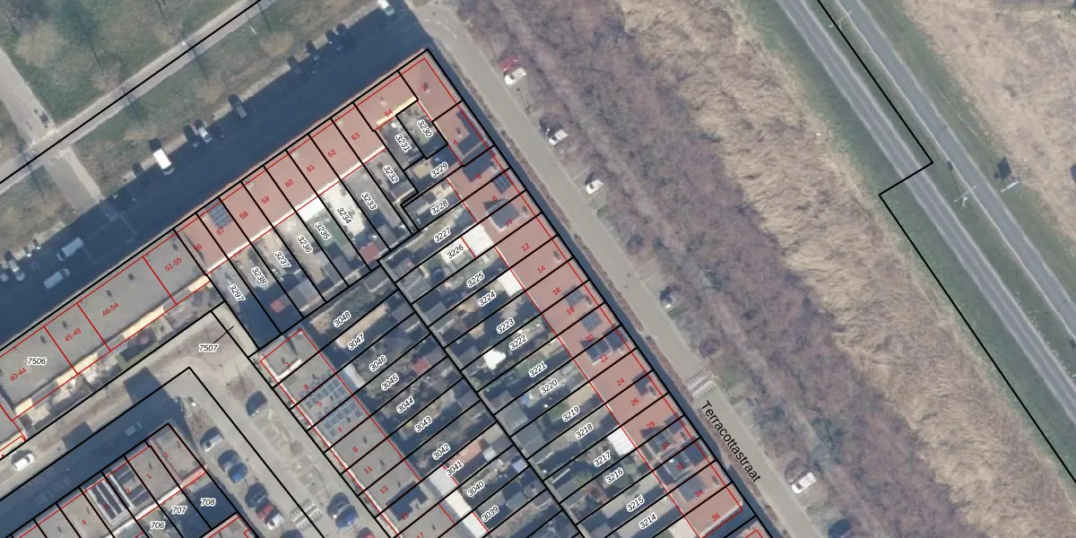 Terracottastraat 14 is gelegen op kadastraal perceel AMR04B3224. Deze kadastrale aanduiding is uniek en wordt gebruikt door het Kadaster om eigendomsrechten en andere zakelijke rechten vast te leggen. Het perceel maakt onderdeel uit van de kadastrale gemeente Almere.