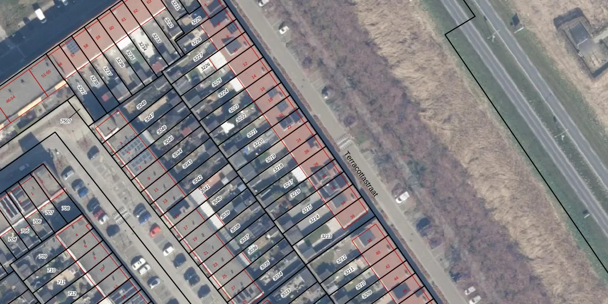 Terracottastraat 26 is gelegen op kadastraal perceel AMR04B3218. Deze kadastrale aanduiding is uniek en wordt gebruikt door het Kadaster om eigendomsrechten en andere zakelijke rechten vast te leggen. Het perceel maakt onderdeel uit van de kadastrale gemeente Almere.