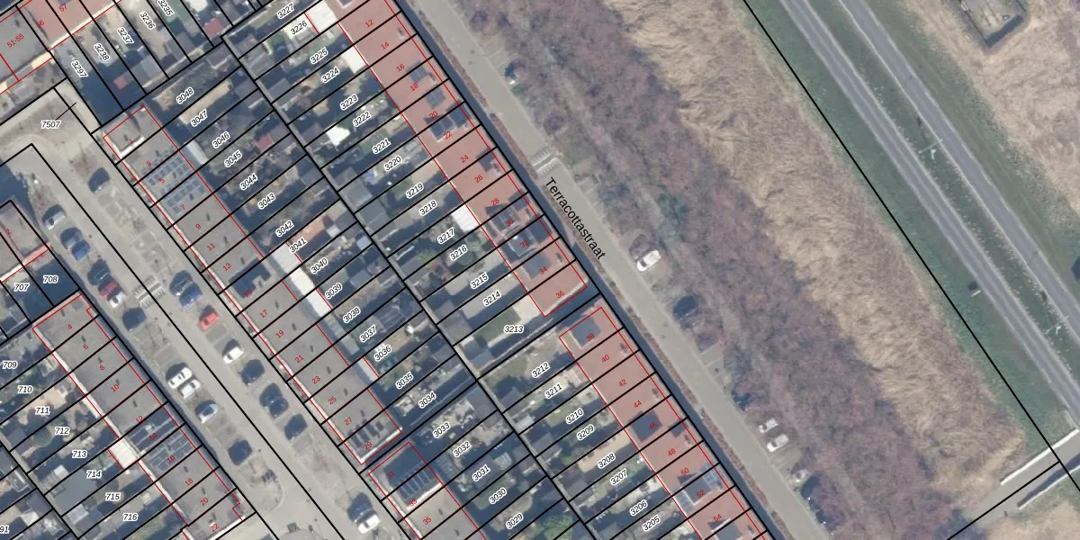 Het perceel waarop Terracottastraat 34 staat heeft een oppervlakte van 145 m². Dit is een middelgroot perceel. De perceeloppervlakte wordt geregistreerd door het Kadaster. Gedetailleerde informatie over de maten van dit perceel kunt u vinden in het rapport Kadastrale kaart met maatvoering van Terracottastraat 34.