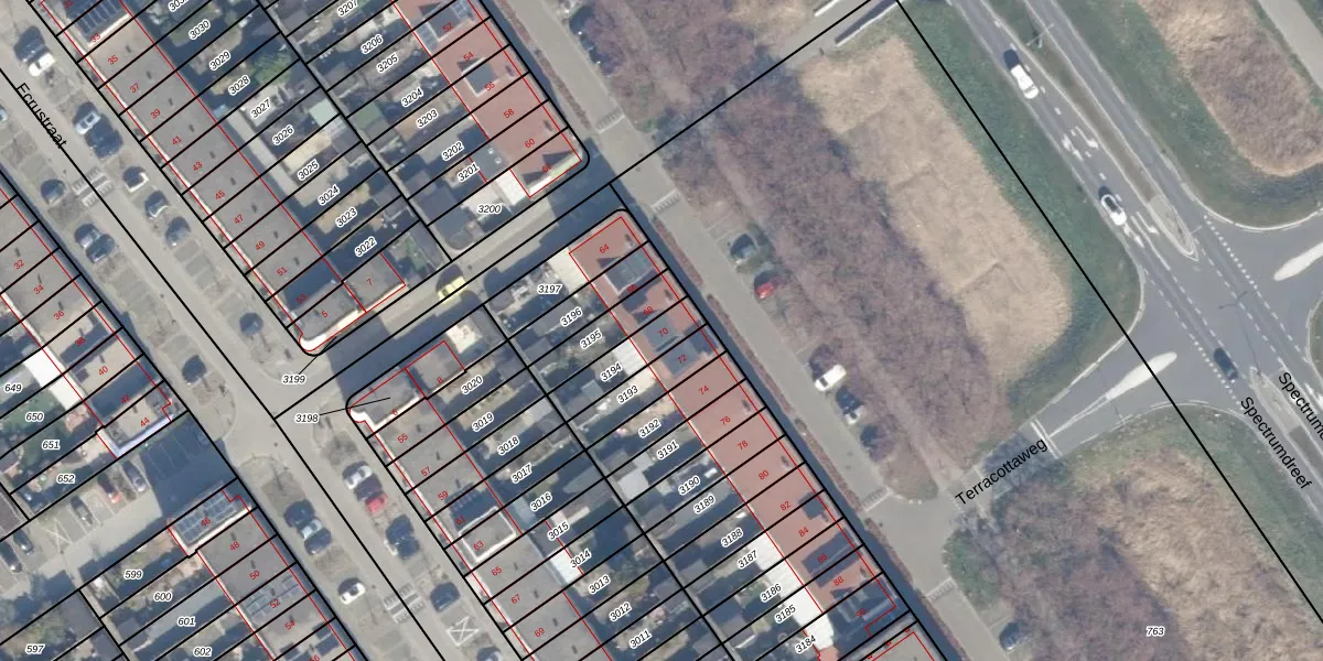 Het perceel waarop Terracottastraat 70 staat heeft een oppervlakte van 134 m². Dit is een middelgroot perceel. De perceeloppervlakte wordt geregistreerd door het Kadaster. Gedetailleerde informatie over de maten van dit perceel kunt u vinden in het rapport Kadastrale kaart met maatvoering van Terracottastraat 70.