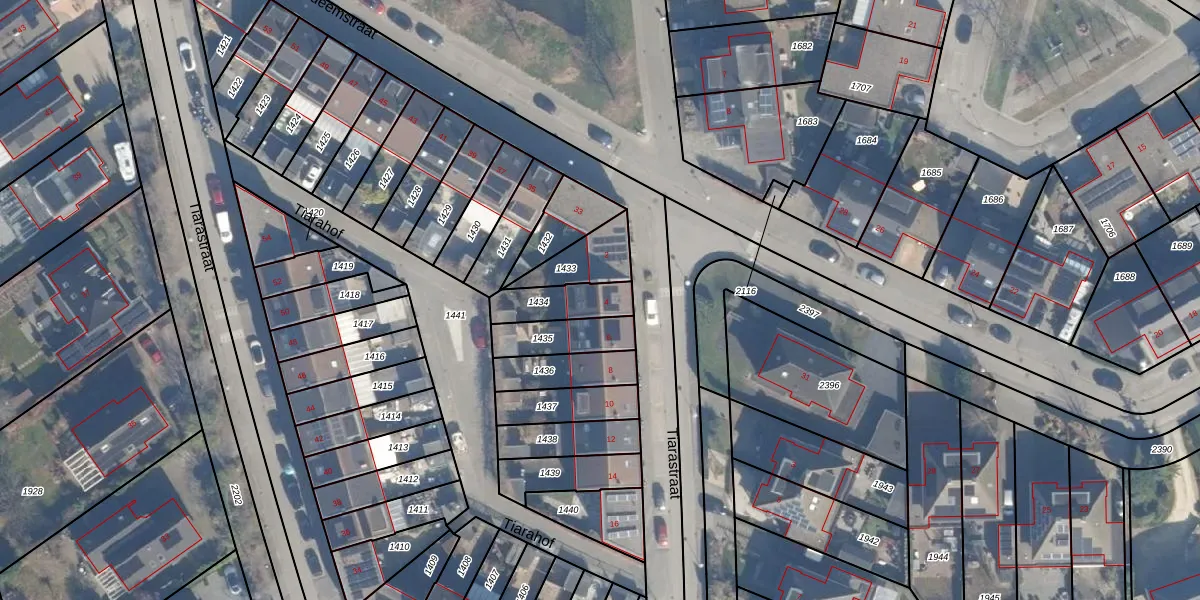 Gebruik de zoekbalk of klik op een perceel voor informatie over de adressen binnen dit perceel.