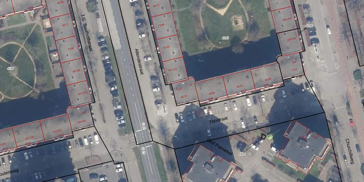 Titostraat 66 is gelegen op kadastraal perceel AMR04O6245. Deze kadastrale aanduiding is uniek en wordt gebruikt door het Kadaster om eigendomsrechten en andere zakelijke rechten vast te leggen. Het perceel maakt onderdeel uit van de kadastrale gemeente Almere.