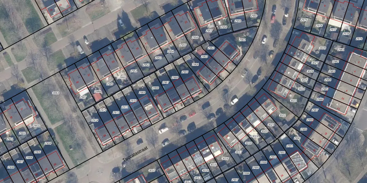 Toccatastraat 12 is gelegen op kadastraal perceel AMR04Q2966. Deze kadastrale aanduiding is uniek en wordt gebruikt door het Kadaster om eigendomsrechten en andere zakelijke rechten vast te leggen. Het perceel maakt onderdeel uit van de kadastrale gemeente Almere.