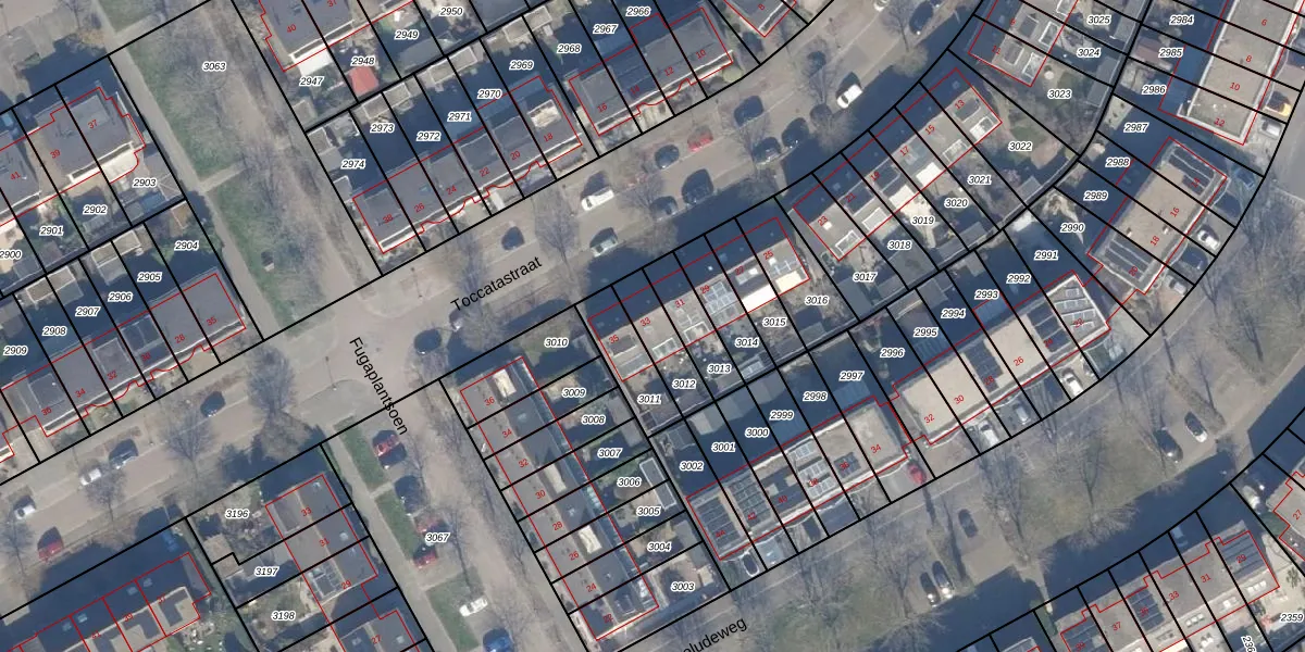 Het perceel waarop Toccatastraat 33 staat heeft een oppervlakte van 126 m². Dit is een middelgroot perceel. De perceeloppervlakte wordt geregistreerd door het Kadaster. Gedetailleerde informatie over de maten van dit perceel kunt u vinden in het rapport Kadastrale kaart met maatvoering van Toccatastraat 33.