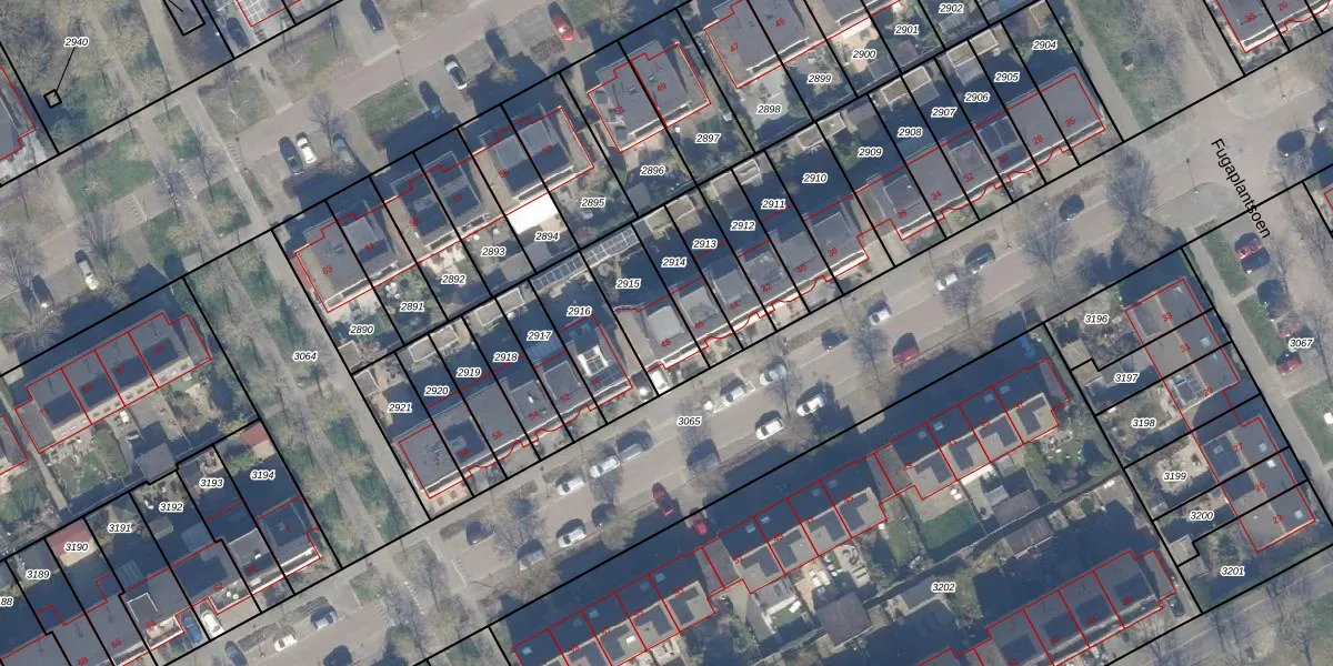 Gebruik de zoekbalk of klik op een perceel voor informatie over de adressen binnen dit perceel.
