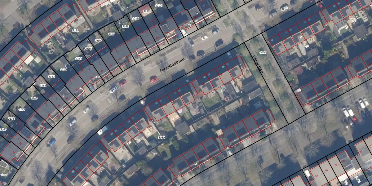 Het perceel waarop Toccatastraat 71 staat heeft een oppervlakte van 6795 m². Dit is een zeer groot perceel. De perceeloppervlakte wordt geregistreerd door het Kadaster. Gedetailleerde informatie over de maten van dit perceel kunt u vinden in het rapport Kadastrale kaart met maatvoering van Toccatastraat 71.