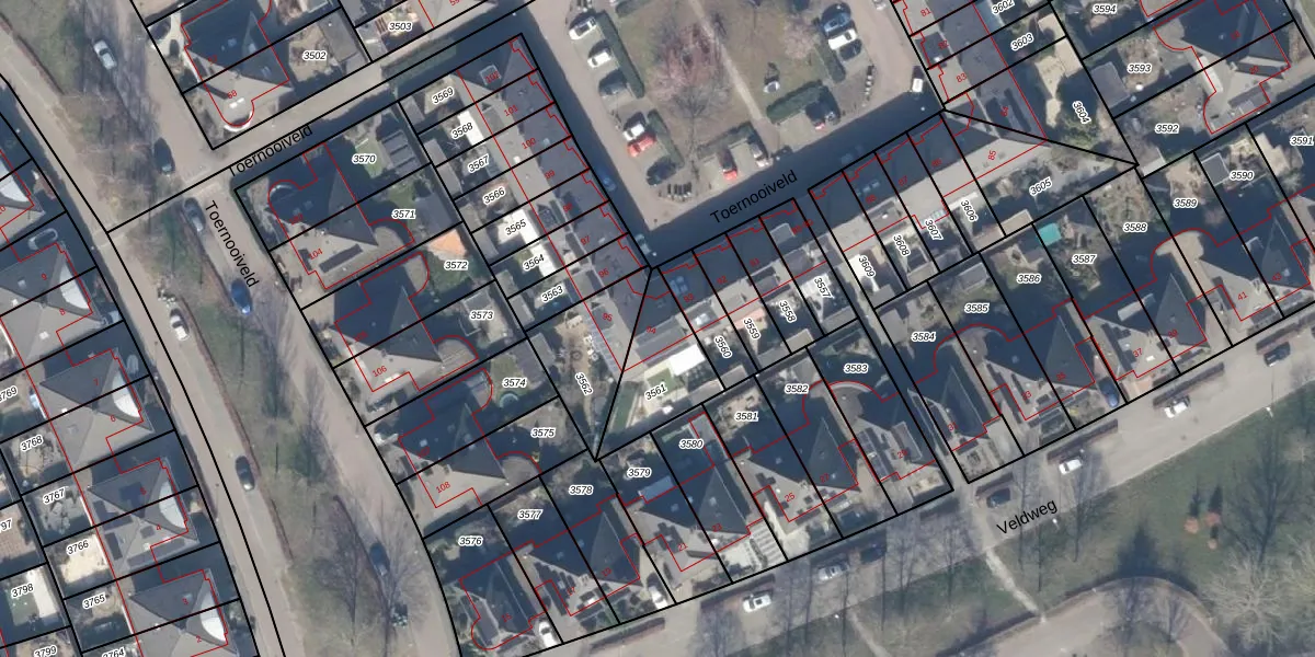 Het perceel waarop Toernooiveld 94 staat heeft een oppervlakte van 253 m². Dit is een middelgroot perceel. De perceeloppervlakte wordt geregistreerd door het Kadaster. Gedetailleerde informatie over de maten van dit perceel kunt u vinden in het rapport Kadastrale kaart met maatvoering van Toernooiveld 94.