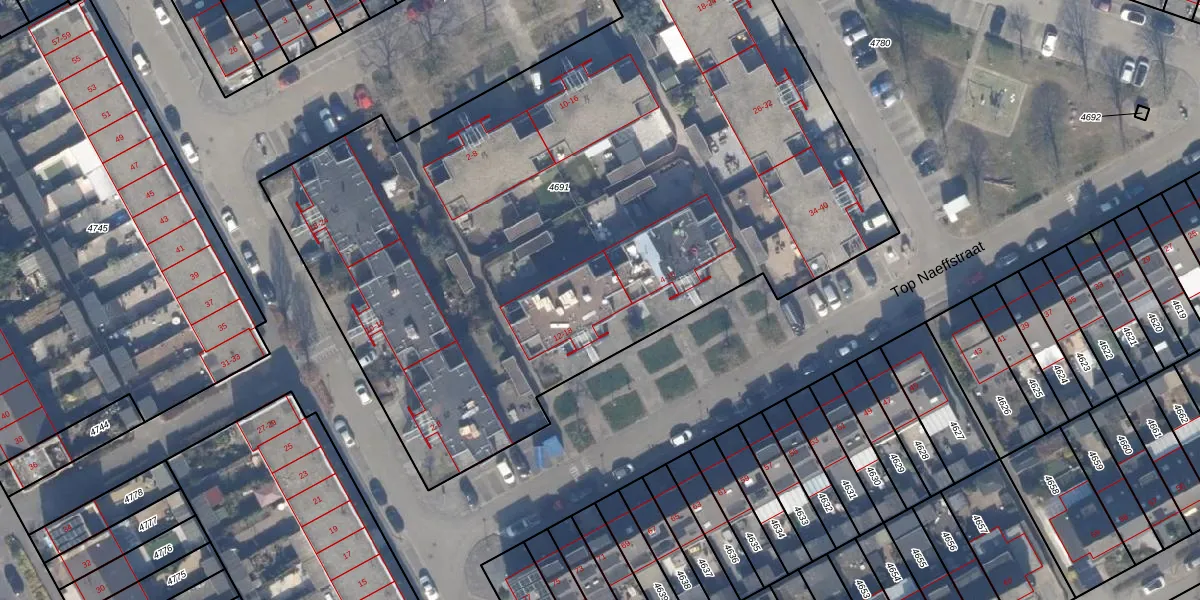 Top Naeffstraat 12 is gelegen op kadastraal perceel AMR04Q4691. Deze kadastrale aanduiding is uniek en wordt gebruikt door het Kadaster om eigendomsrechten en andere zakelijke rechten vast te leggen. Het perceel maakt onderdeel uit van de kadastrale gemeente Almere.
