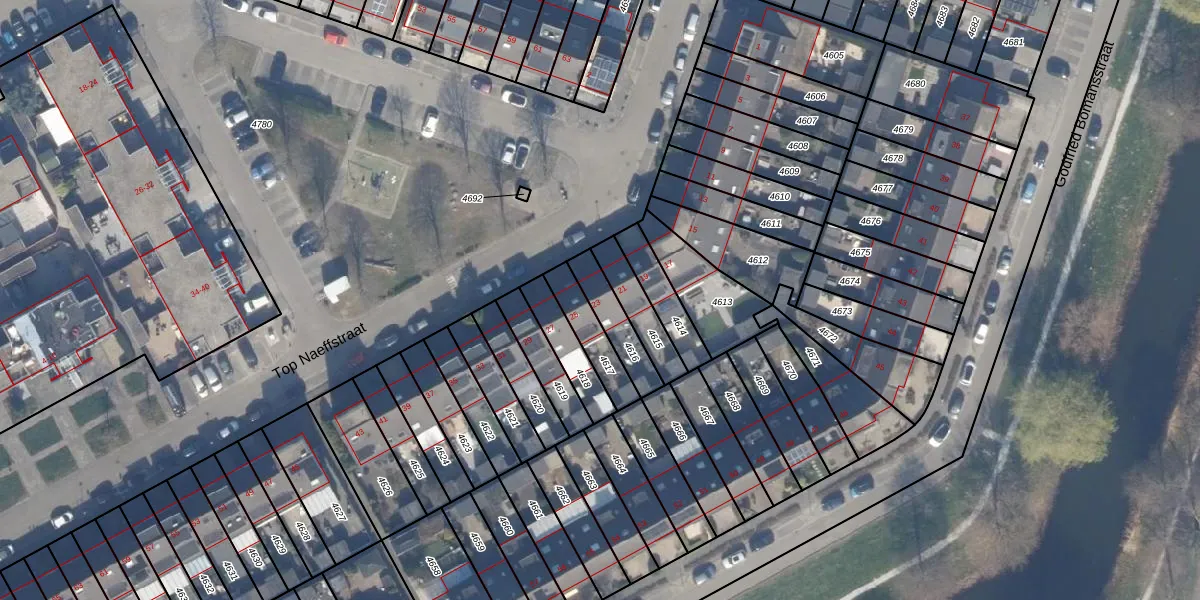 Het perceel waarop Top Naeffstraat 23 staat heeft een oppervlakte van 117 m². Dit is een middelgroot perceel. De perceeloppervlakte wordt geregistreerd door het Kadaster. Gedetailleerde informatie over de maten van dit perceel kunt u vinden in het rapport Kadastrale kaart met maatvoering van Top Naeffstraat 23.