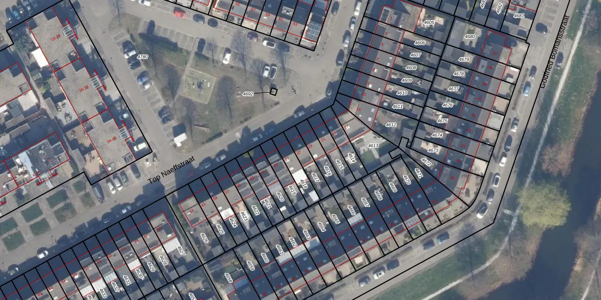 Het perceel waarop Top Naeffstraat 25 staat heeft een oppervlakte van 117 m². Dit is een middelgroot perceel. De perceeloppervlakte wordt geregistreerd door het Kadaster. Gedetailleerde informatie over de maten van dit perceel kunt u vinden in het rapport Kadastrale kaart met maatvoering van Top Naeffstraat 25.
