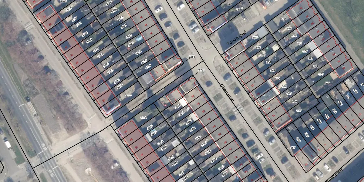 Topaaspad 4 is gelegen op kadastraal perceel AMR04B3255. Deze kadastrale aanduiding is uniek en wordt gebruikt door het Kadaster om eigendomsrechten en andere zakelijke rechten vast te leggen. Het perceel maakt onderdeel uit van de kadastrale gemeente Almere.