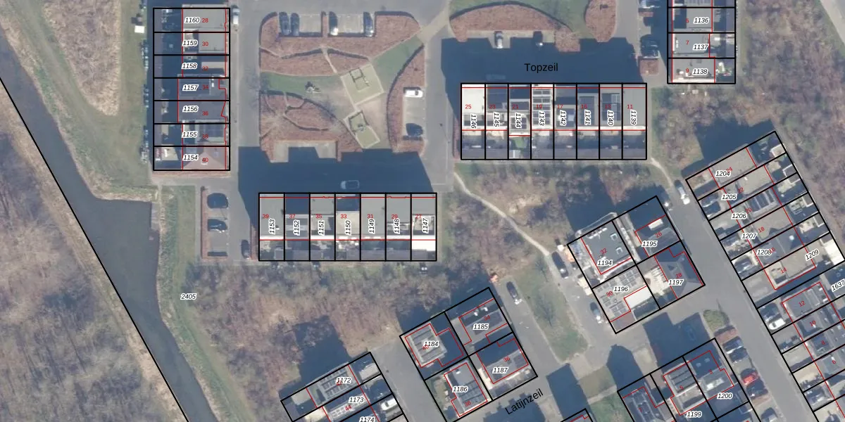 Het perceel waarop Topzeil 27 staat heeft een oppervlakte van 96 m². Dit is een klein perceel. De perceeloppervlakte wordt geregistreerd door het Kadaster. Gedetailleerde informatie over de maten van dit perceel kunt u vinden in het rapport Kadastrale kaart met maatvoering van Topzeil 27.