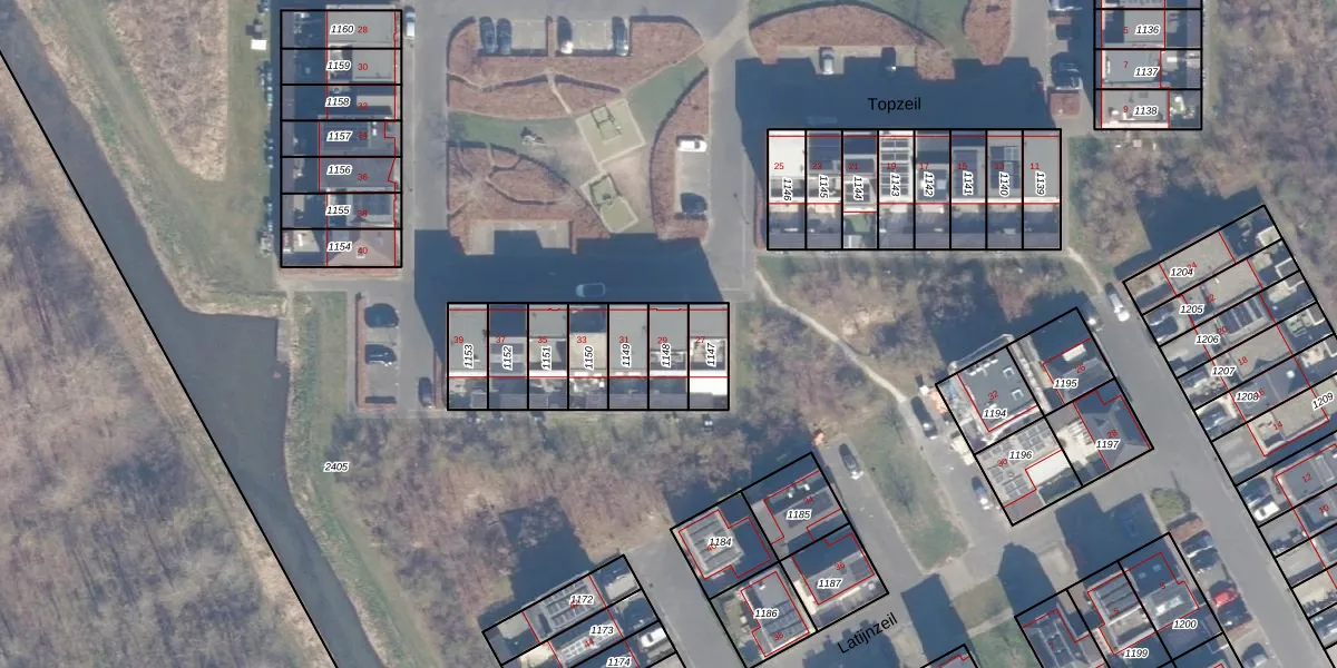Het perceel waarop Topzeil 29 staat heeft een oppervlakte van 96 m². Dit is een klein perceel. De perceeloppervlakte wordt geregistreerd door het Kadaster. Gedetailleerde informatie over de maten van dit perceel kunt u vinden in het rapport Kadastrale kaart met maatvoering van Topzeil 29.