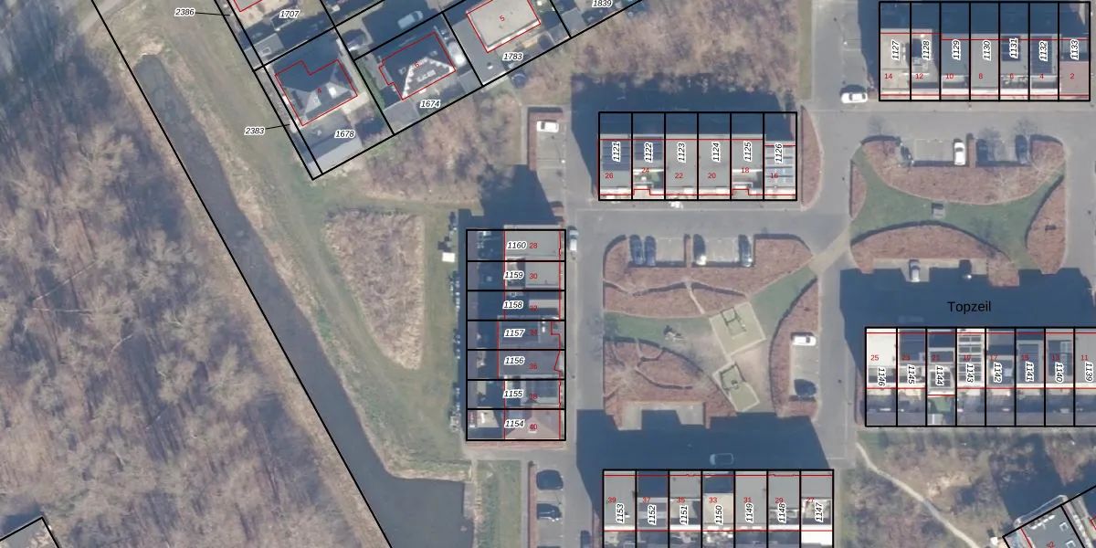 Het perceel waarop Topzeil 30 staat heeft een oppervlakte van 97 m². Dit is een klein perceel. De perceeloppervlakte wordt geregistreerd door het Kadaster. Gedetailleerde informatie over de maten van dit perceel kunt u vinden in het rapport Kadastrale kaart met maatvoering van Topzeil 30.