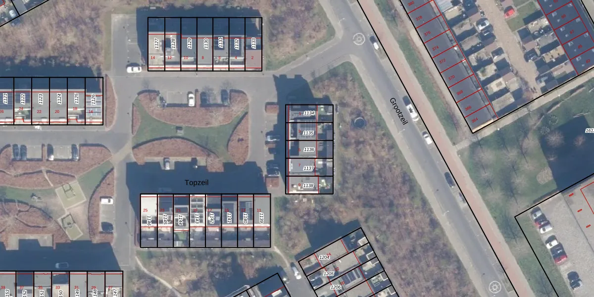 Het perceel waarop Topzeil 5 staat heeft een oppervlakte van 96 m². Dit is een klein perceel. De perceeloppervlakte wordt geregistreerd door het Kadaster. Gedetailleerde informatie over de maten van dit perceel kunt u vinden in het rapport Kadastrale kaart met maatvoering van Topzeil 5.