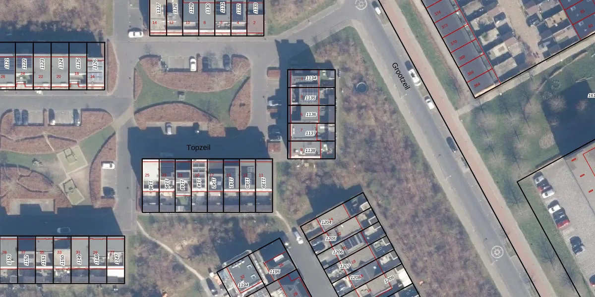 Het perceel waarop Topzeil 9 staat heeft een oppervlakte van 96 m². Dit is een klein perceel. De perceeloppervlakte wordt geregistreerd door het Kadaster. Gedetailleerde informatie over de maten van dit perceel kunt u vinden in het rapport Kadastrale kaart met maatvoering van Topzeil 9.