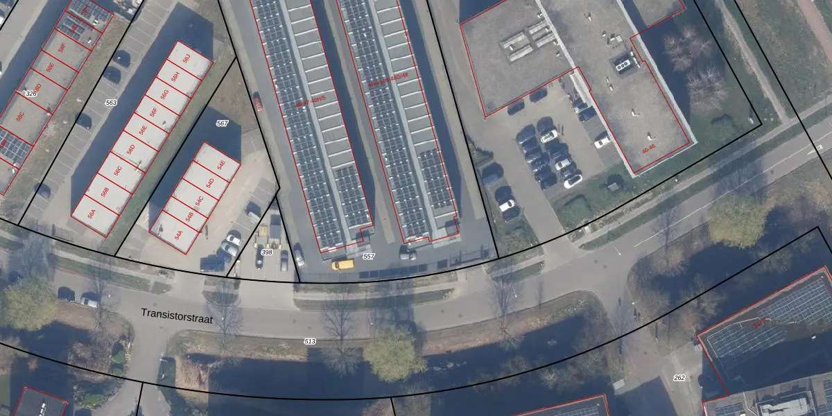 Het perceel waarop Transistorstraat 48-G-103 staat heeft een oppervlakte van 4233 m². Dit is een zeer groot perceel. De perceeloppervlakte wordt geregistreerd door het Kadaster. Gedetailleerde informatie over de maten van dit perceel kunt u vinden in het rapport Kadastrale kaart met maatvoering van Transistorstraat 48-G-103.