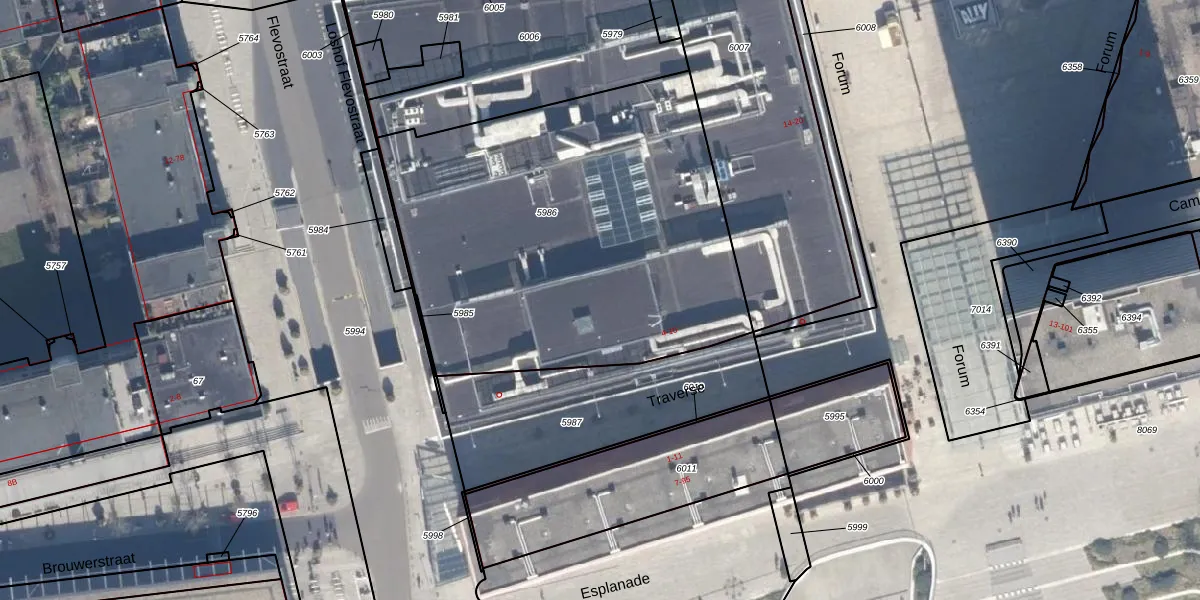 Traverse 6 is gelegen op kadastraal perceel AMR04K5986. Deze kadastrale aanduiding is uniek en wordt gebruikt door het Kadaster om eigendomsrechten en andere zakelijke rechten vast te leggen. Het perceel maakt onderdeel uit van de kadastrale gemeente Almere.