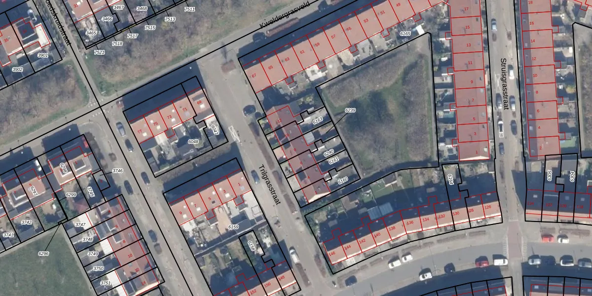 Het perceel waarop Trilgrasstraat 8 staat heeft een oppervlakte van 121 m². Dit is een middelgroot perceel. De perceeloppervlakte wordt geregistreerd door het Kadaster. Gedetailleerde informatie over de maten van dit perceel kunt u vinden in het rapport Kadastrale kaart met maatvoering van Trilgrasstraat 8.
