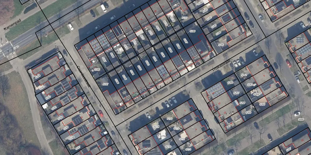 Gebruik de zoekbalk of klik op een perceel voor informatie over de adressen binnen dit perceel.