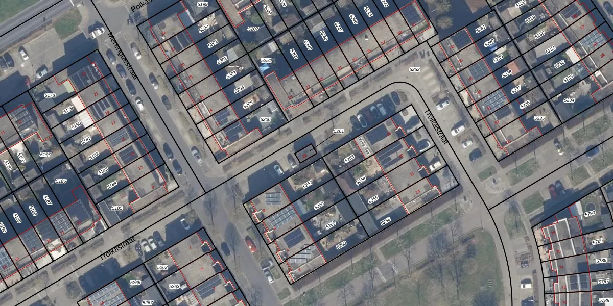 Het perceel waarop Troikastraat 26 staat heeft een oppervlakte van 23 m². Dit is een klein perceel. De perceeloppervlakte wordt geregistreerd door het Kadaster. Gedetailleerde informatie over de maten van dit perceel kunt u vinden in het rapport Kadastrale kaart met maatvoering van Troikastraat 26.