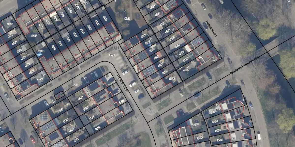 Gebruik de zoekbalk of klik op een perceel voor informatie over de adressen binnen dit perceel.