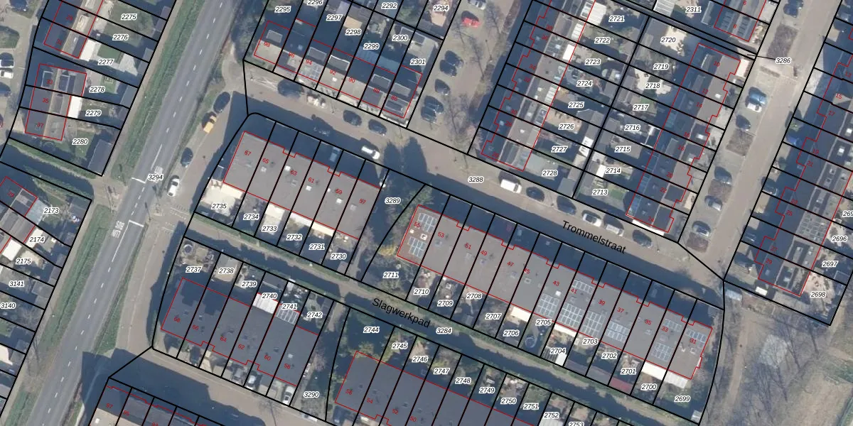 Het perceel waarop Trommelstraat 55 staat heeft een oppervlakte van 257 m². Dit is een middelgroot perceel. De perceeloppervlakte wordt geregistreerd door het Kadaster. Gedetailleerde informatie over de maten van dit perceel kunt u vinden in het rapport Kadastrale kaart met maatvoering van Trommelstraat 55.