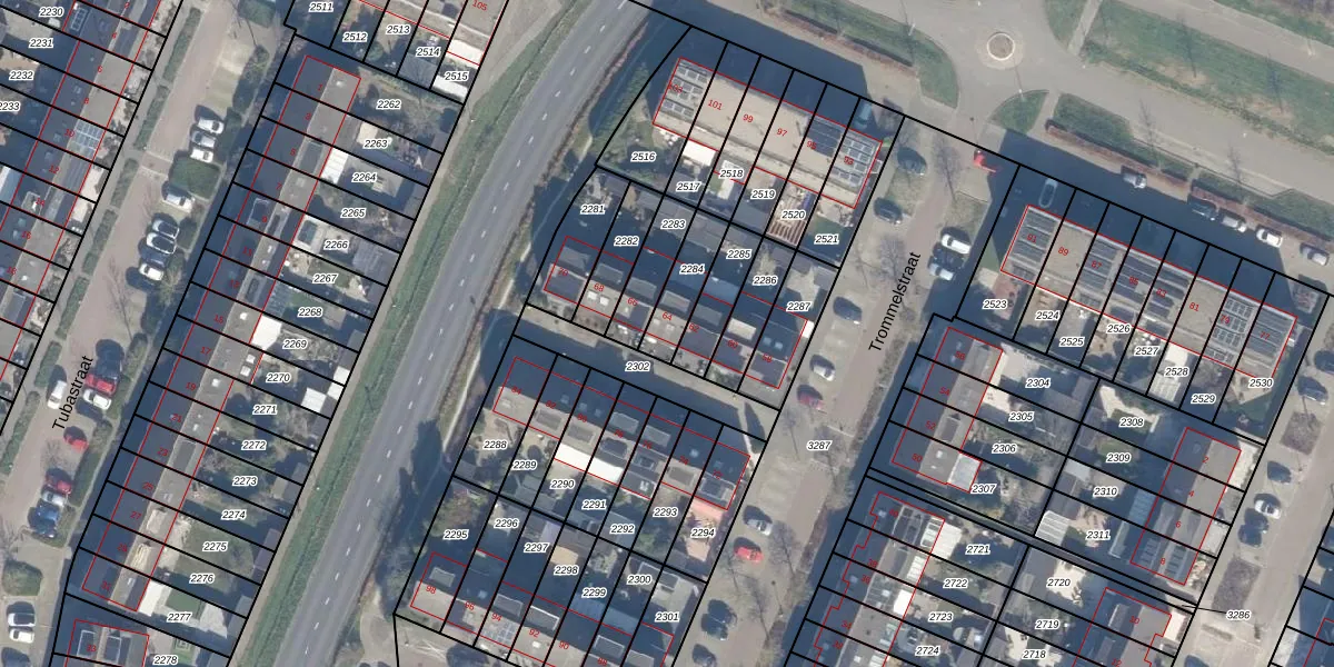 Het perceel waarop Trommelstraat 64 staat heeft een oppervlakte van 125 m². Dit is een middelgroot perceel. De perceeloppervlakte wordt geregistreerd door het Kadaster. Gedetailleerde informatie over de maten van dit perceel kunt u vinden in het rapport Kadastrale kaart met maatvoering van Trommelstraat 64.