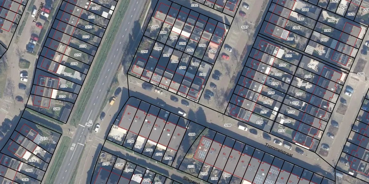 Het perceel waarop Trommelstraat 88 staat heeft een oppervlakte van 121 m². Dit is een middelgroot perceel. De perceeloppervlakte wordt geregistreerd door het Kadaster. Gedetailleerde informatie over de maten van dit perceel kunt u vinden in het rapport Kadastrale kaart met maatvoering van Trommelstraat 88.