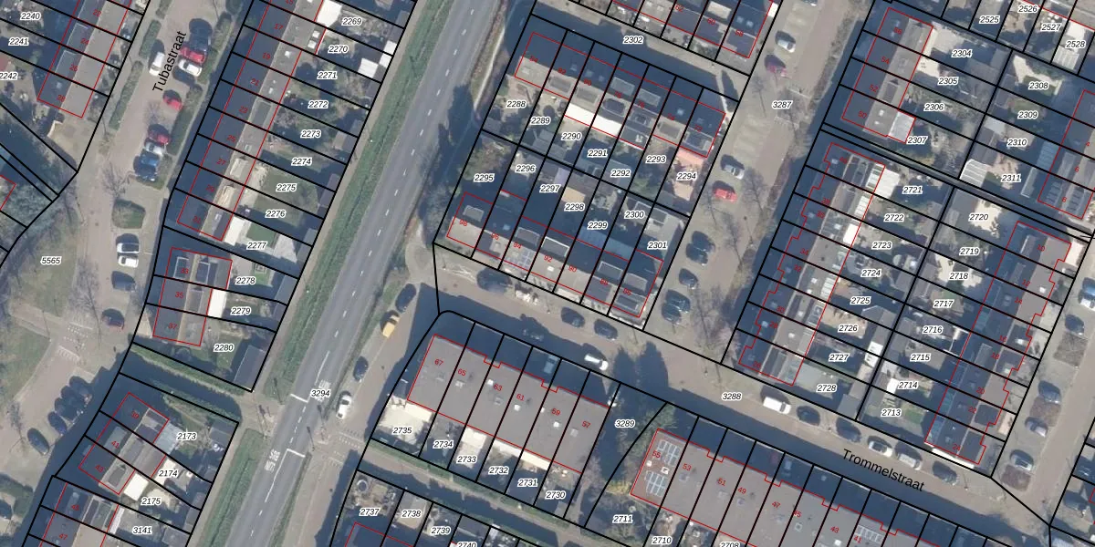 Het perceel waarop Trommelstraat 92 staat heeft een oppervlakte van 121 m². Dit is een middelgroot perceel. De perceeloppervlakte wordt geregistreerd door het Kadaster. Gedetailleerde informatie over de maten van dit perceel kunt u vinden in het rapport Kadastrale kaart met maatvoering van Trommelstraat 92.