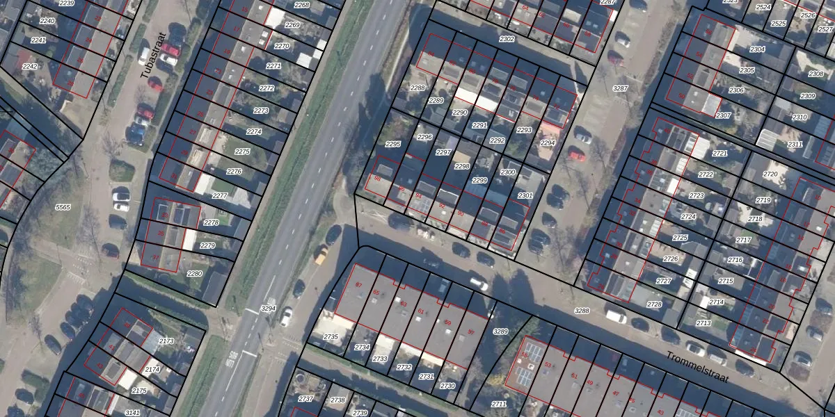 Het perceel waarop Trommelstraat 94 staat heeft een oppervlakte van 121 m². Dit is een middelgroot perceel. De perceeloppervlakte wordt geregistreerd door het Kadaster. Gedetailleerde informatie over de maten van dit perceel kunt u vinden in het rapport Kadastrale kaart met maatvoering van Trommelstraat 94.