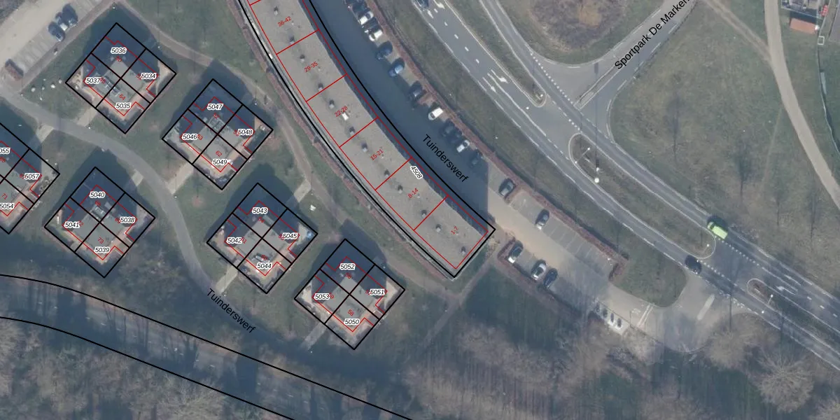 Het perceel waarop Tuinderswerf 11 staat heeft een oppervlakte van 1399 m². Dit is een zeer groot perceel. De perceeloppervlakte wordt geregistreerd door het Kadaster. Gedetailleerde informatie over de maten van dit perceel kunt u vinden in het rapport Kadastrale kaart met maatvoering van Tuinderswerf 11.
