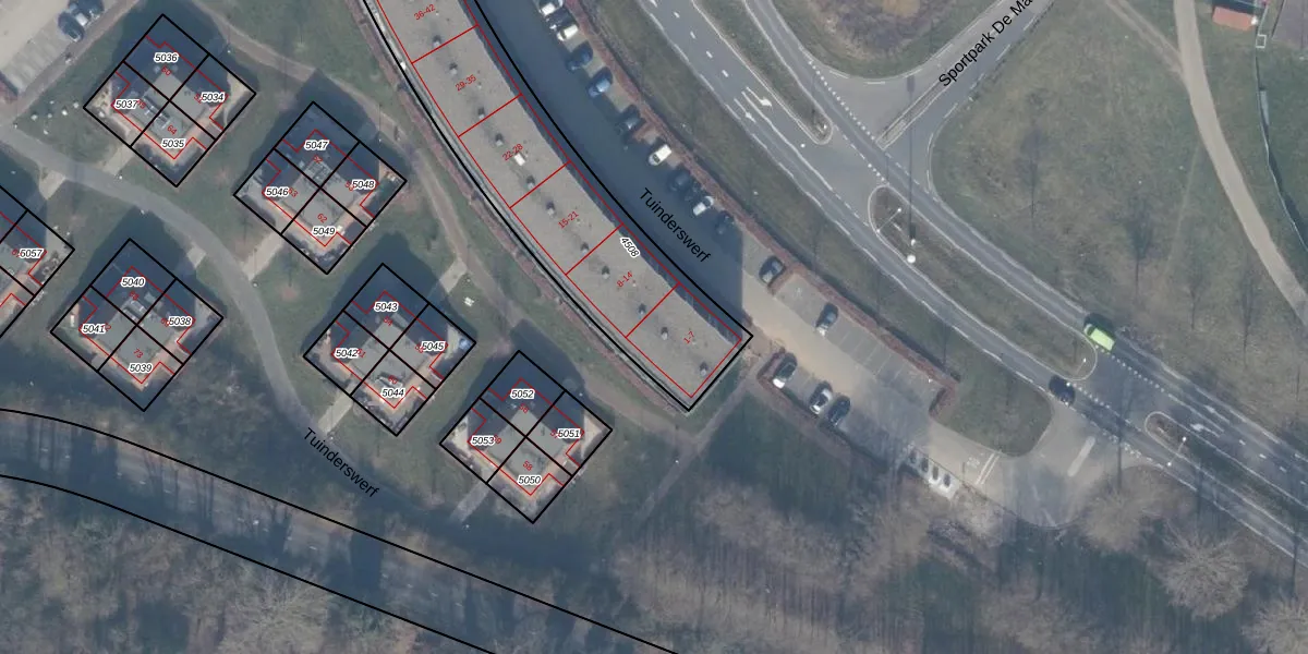 Tuinderswerf 5 is gelegen op kadastraal perceel AMR04H4508. Deze kadastrale aanduiding is uniek en wordt gebruikt door het Kadaster om eigendomsrechten en andere zakelijke rechten vast te leggen. Het perceel maakt onderdeel uit van de kadastrale gemeente Almere.