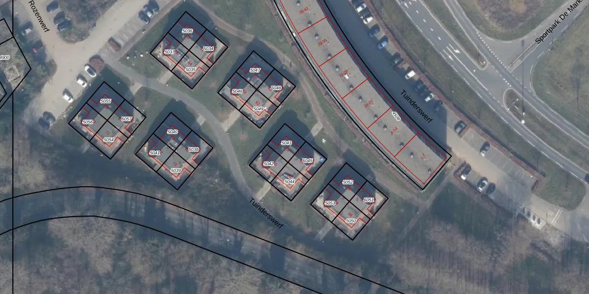 Het perceel waarop Tuinderswerf 54 staat heeft een oppervlakte van 87 m². Dit is een klein perceel. De perceeloppervlakte wordt geregistreerd door het Kadaster. Gedetailleerde informatie over de maten van dit perceel kunt u vinden in het rapport Kadastrale kaart met maatvoering van Tuinderswerf 54.