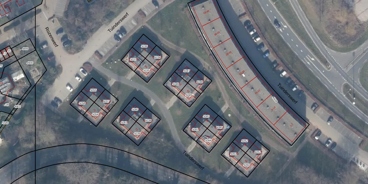 Het perceel waarop Tuinderswerf 62 staat heeft een oppervlakte van 87 m². Dit is een klein perceel. De perceeloppervlakte wordt geregistreerd door het Kadaster. Gedetailleerde informatie over de maten van dit perceel kunt u vinden in het rapport Kadastrale kaart met maatvoering van Tuinderswerf 62.