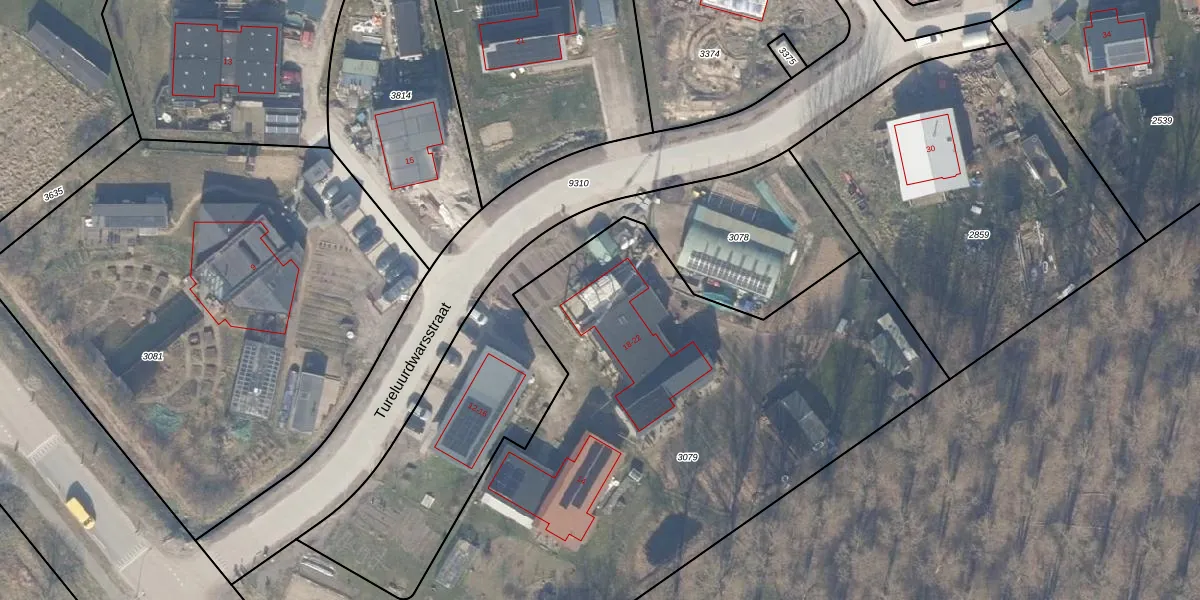 Het perceel waarop Tureluurdwarsstraat 18 staat heeft een oppervlakte van 4126 m². Dit is een zeer groot perceel. De perceeloppervlakte wordt geregistreerd door het Kadaster. Gedetailleerde informatie over de maten van dit perceel kunt u vinden in het rapport Kadastrale kaart met maatvoering van Tureluurdwarsstraat 18.