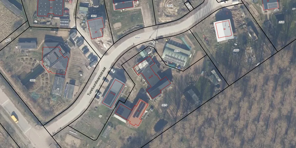 Het perceel waarop Tureluurdwarsstraat 20 staat heeft een oppervlakte van 4126 m². Dit is een zeer groot perceel. De perceeloppervlakte wordt geregistreerd door het Kadaster. Gedetailleerde informatie over de maten van dit perceel kunt u vinden in het rapport Kadastrale kaart met maatvoering van Tureluurdwarsstraat 20.